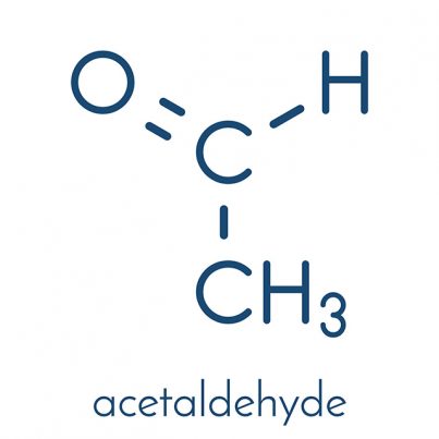 Acetaldehyde is a product of alcohol metabolism that is even more toxic than alcohol. It is produced when the liver breaks down alcohol through an enzyme called dehydrogenase. Glutathione in the liver quickly runs out when high amounts of alcohol enter the body. This results to the acetaldehyde accumulating in the body as the liver produces more glutathione, leaving the toxic substance in the body for long periods of time.