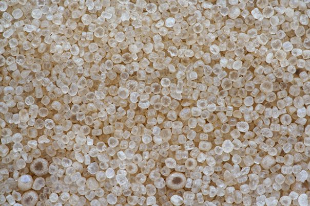 Ammonium sulfate with the molecular formula of (NH4)2SO4, is an inorganic salt that is commonly used in fertilizers and in the food industry. This chemical compound comes from the heated reaction of ammonia and sulfuric acid. It is a crystal-like solid that has no odor, has a little salty taste, and is predominantly useful because of its high solubility properties. It ranges in color from white to beige. The size of the crystal is controlled by changing reaction conditions, then dried, and screened to the desired final particle size.