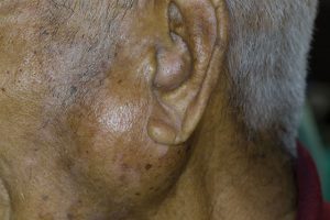 One of the side effects of a parotid gland tumor is a mass or swelling in the jaw area that may or may not be painful. If the tumor is cancerous, it may also affect facial nerves, which results in pain, numbness, a burning or prickling sensation, or loss of movement in the face. Parotid tumor infiltration or surgery may cause damage to the facial nerve. Moreover, the risk of damage is greater with repeated operations. After a parotid surgery, Frey’s syndrome can occur. Frey’s syndrome is the redness and sweating on the cheek, which can appear when eating, seeing or thinking about certain kinds of food that produce strong salivation.