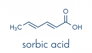 Sorbic acid is a type of acid that is used as a preservative as it prevents spoilage caused by yeasts, fungis, and molds. Although it naturally occurs, it is commercially manufactured chemically from the toxic, irritant, colorless gas known as ketene.