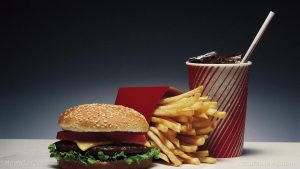 Food items typically found in Western diet include modern wheat products, meat, milk, cheese, cheeseburgers, french fries, large-sized sodas, sports drinks, fruit juices, and deep-dish pizza. A typical breakfast meal on this diet may consist of white flour pancakes with a side of sausage, with whole milk and syrup. For lunch, it may consist of a fastfood burger, french fries, and a sugary drink. For dinner, it may consist of fried chicken or meatloaf with mashed potatoes and gravy. Lastly, for desserts and snacks, it may include potato chips, cookies, ice cream, candy bars, and other processed snack foods. Moreover, the ingredients typically found in these food are high-fructose corn syrup, trans fat or partially hydrogenated oils, sugar, bleached, enriched flours, food coloring, artificial flavors, and other chemical additives that do not include any nutritional value.