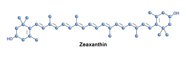 Zeaxanthin is a carotenoid xanthophyll responsible for the colors of corn and saffron. While its primary function in nature is to give certain plants their signature hues, zeaxanthin plays a different role for humans and animals. Along with lutein, zeaxanthin is one of two special carotenoids found in the lens and retina of the eye. This means that these two carotenoids have the express purpose of keeping the eyes healthy and functioning normally well into old age.